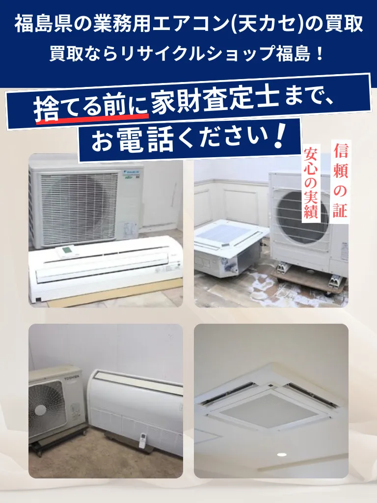 “リサイクルショップ福島”では買取り可能な業務用エアコンを高価買取りしています。