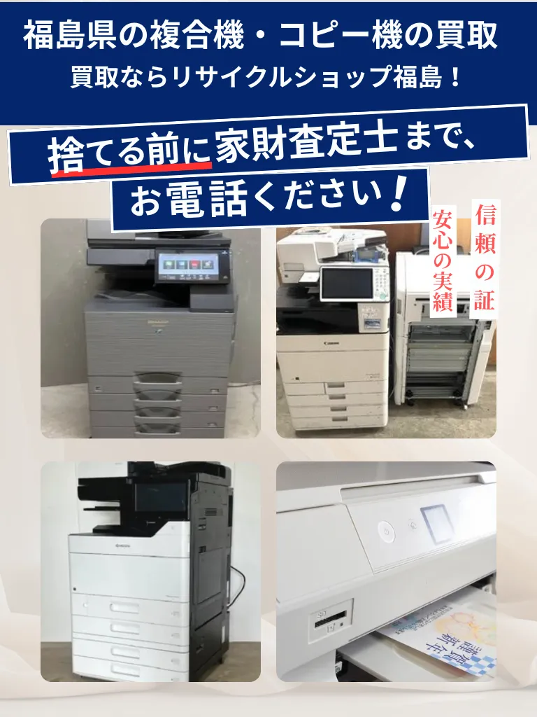 キヤノン、リコー、富士フイルムなどの人気複合機を福島県全域で高価買取!